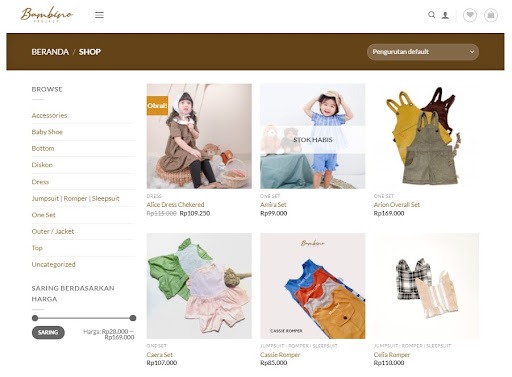 Saat itu paket Online Shop dari Niagaweb yang dipilih Wulan untuk Bambino Project meliputi lima halaman website awal yang cukup untuk kebutuhan bisnisnya. Apalagi, masih ada pilihan 500+ tema yang bisa disesuaikan dengan brand atau keinginannya.